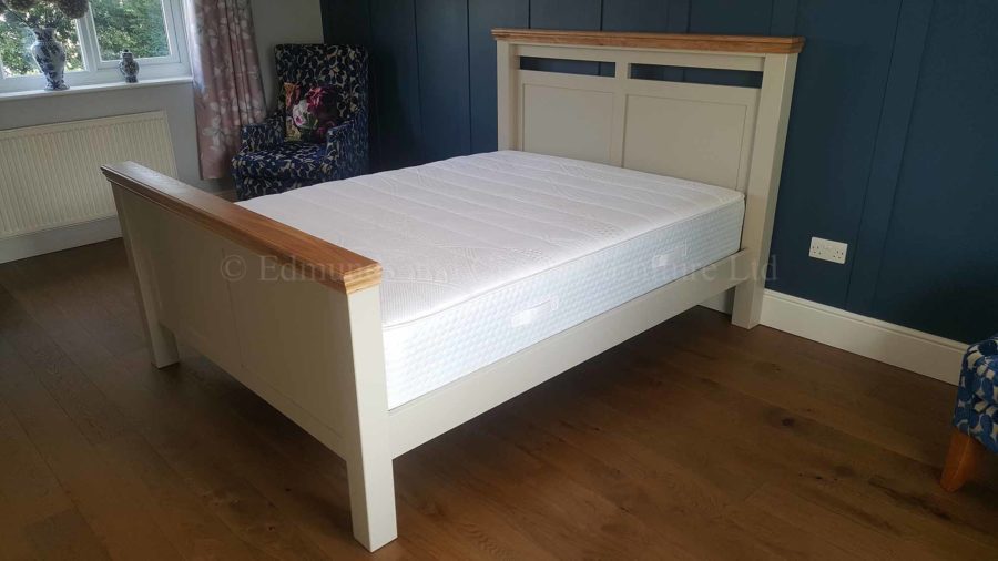 Made with a high headboard and foot end with a matching panelled design. Our workshop created a similar oak capping which then tied in with existing Lundy pieces.