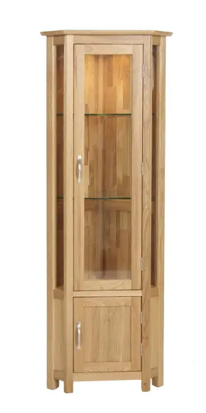 Dorset Oak Glazed Corner Display Cabinet with Light
