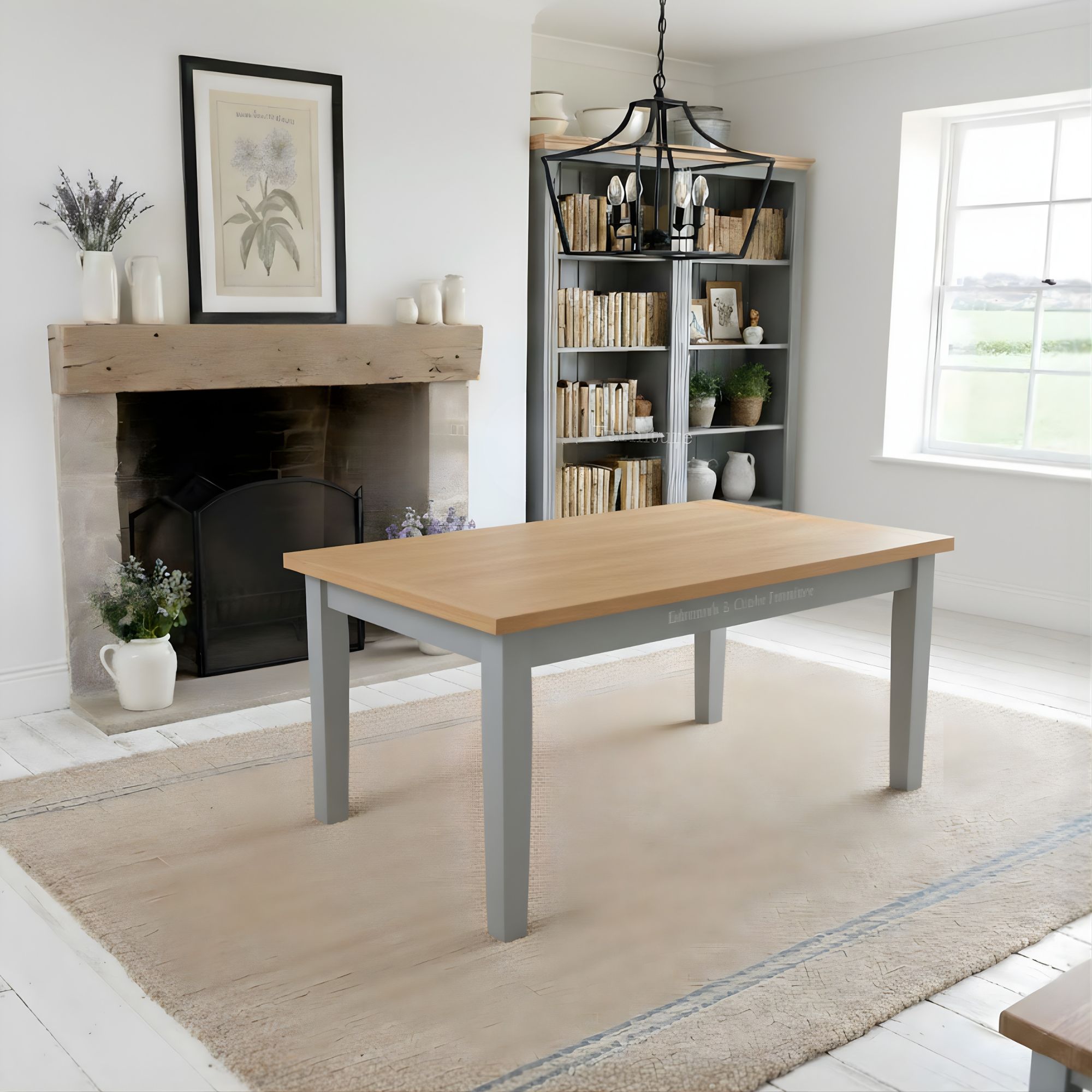 Image Showing – Professionally spray painted in Mid Grey with a square edge solid oak top in our matt lacquer finish.