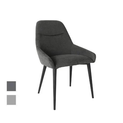 These Clyde chairs are the perfect addition to your dining room. Upholstered in a beautiful soft to touch matt chenille with a subtle textured pattern. Boasting a soft padded seat complemented by black powder-coated legs.