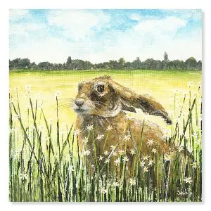 We love this summertime canvas of a beautifully still looking Hare, sitting gracefully in a field amongst tiny daisy’s. Perfect in any room of your home or as a gift. Canvas by Sarah Pye.
