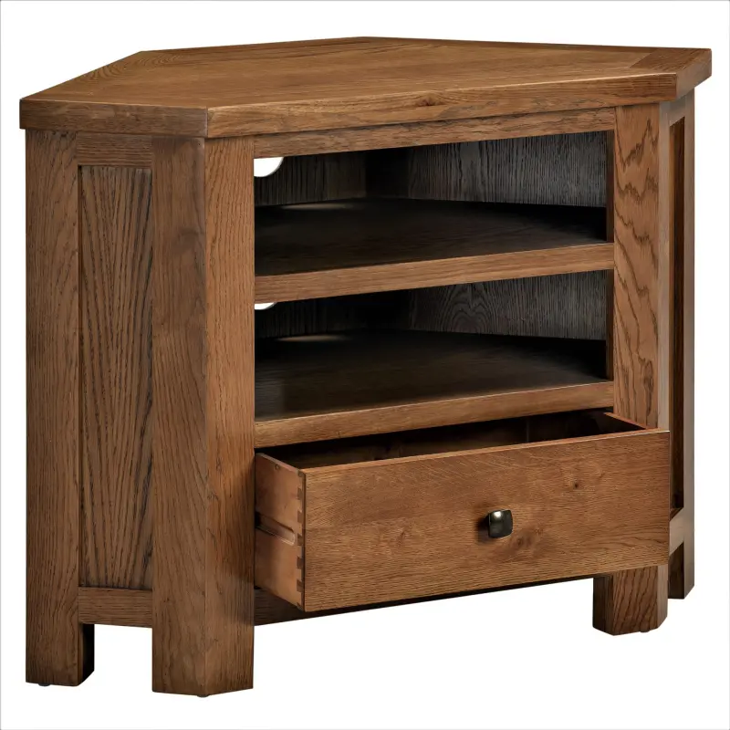 This large eye catching piece will bring a contemporary style to your home. It boasts clean straight lines, dovetailed drawer with stylish square knob. There are two handy open shelves above to stow away digital equipment.