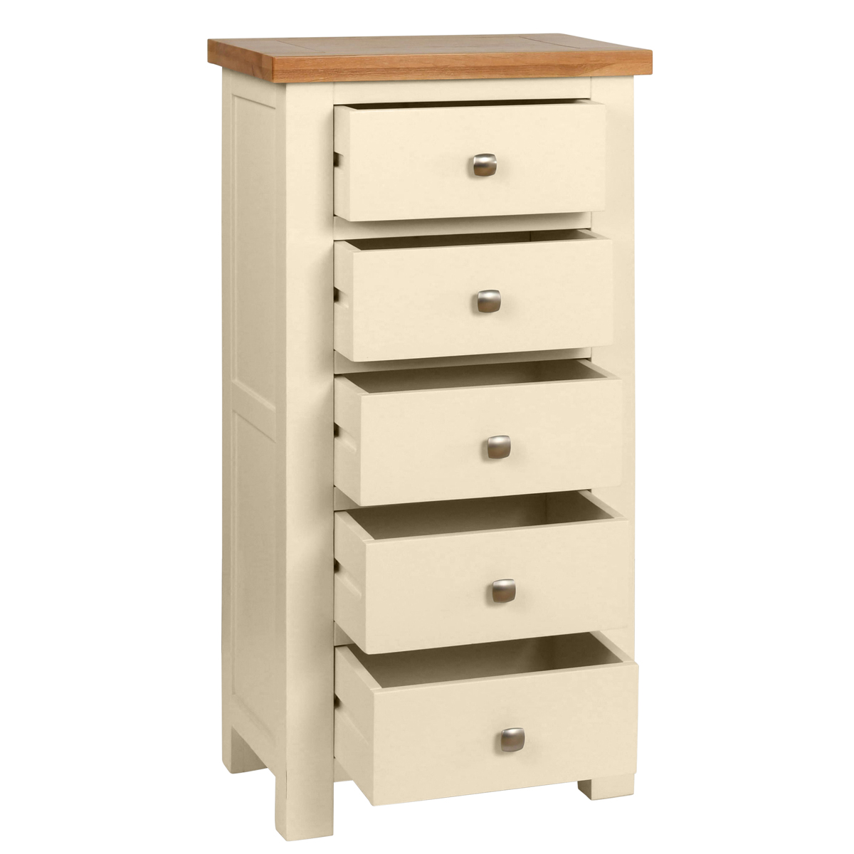 The Dorset Painted 5 Drawer Tall Chest Features:-