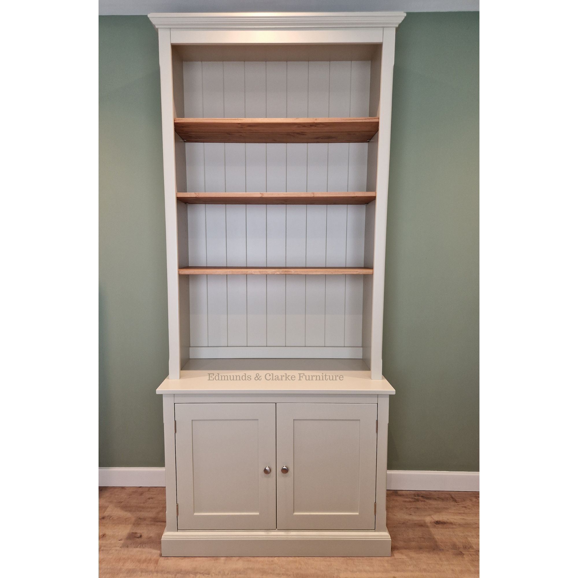 As standard we offer the shelves in two finishes – painted allover to match the main unit, or light oak stained waxed pine to either match a complete wood unit or feature as a nice contrast to the painted outer. If you require solid oak shelves in any of our standard oak finishes then please get in touch for a competitive quotation.