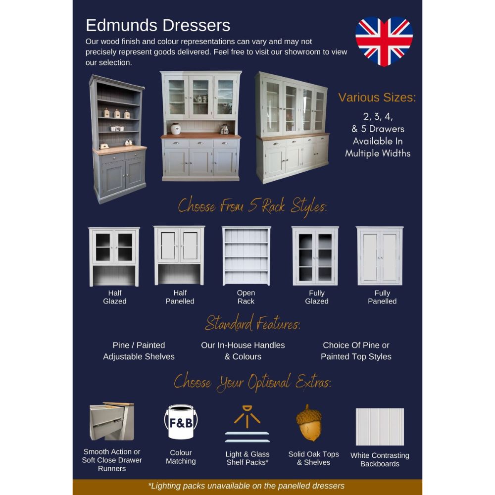 Our Edmunds dressers are perfect for glassware and displaying your favourite pieces. Available in many different sizes and options. They bring a beautiful touch to your home, with a pleasing design and functionality.