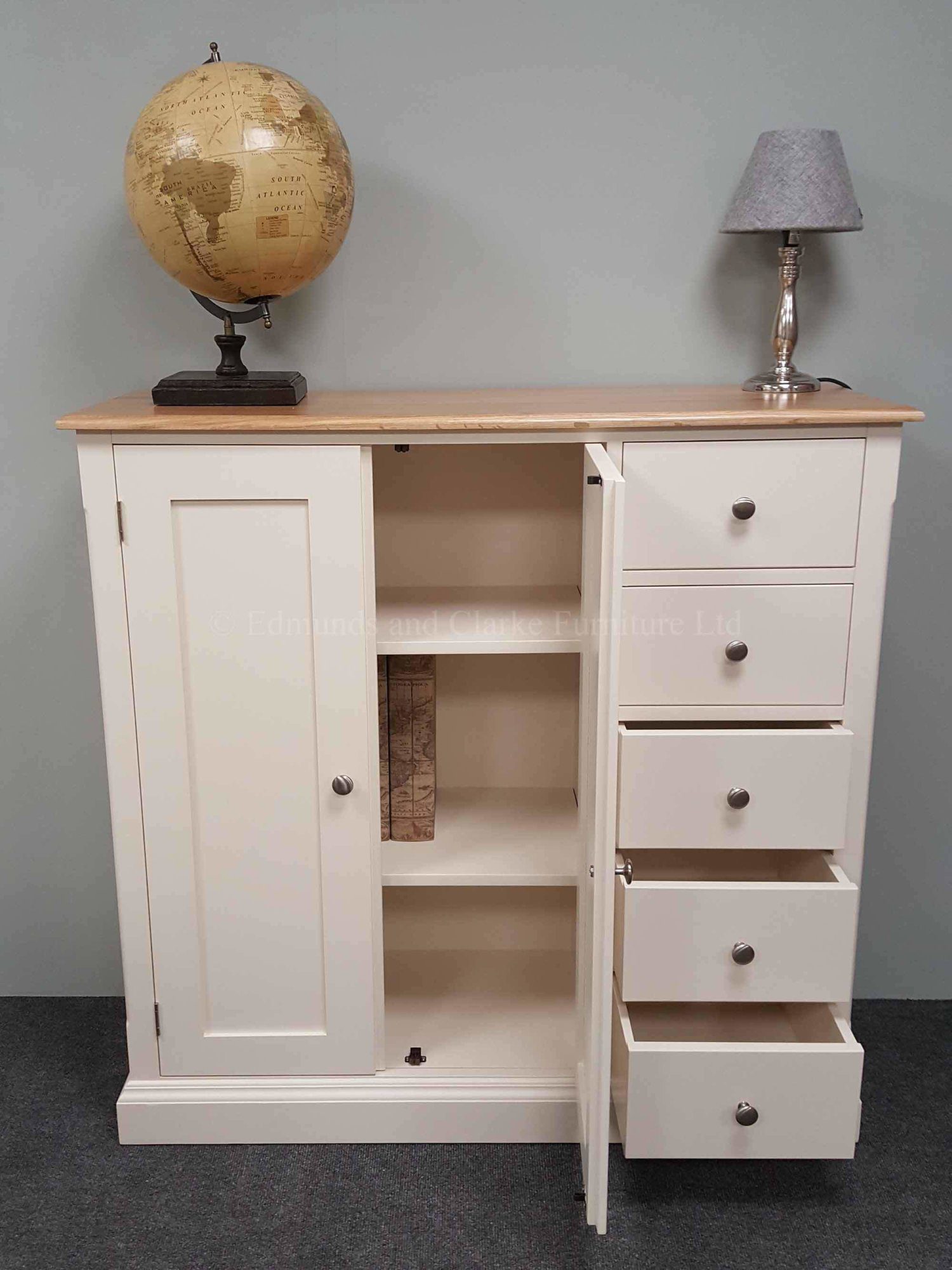 Our Edmunds painted multifunction cupboard is a great-looking unique piece of furniture. This versatile storage solution has been handmade and with five drawers it would not look out of place in any room of your home. Choose all your options upon ordering. Soft close or smooth actions drawers available as an optional extra.