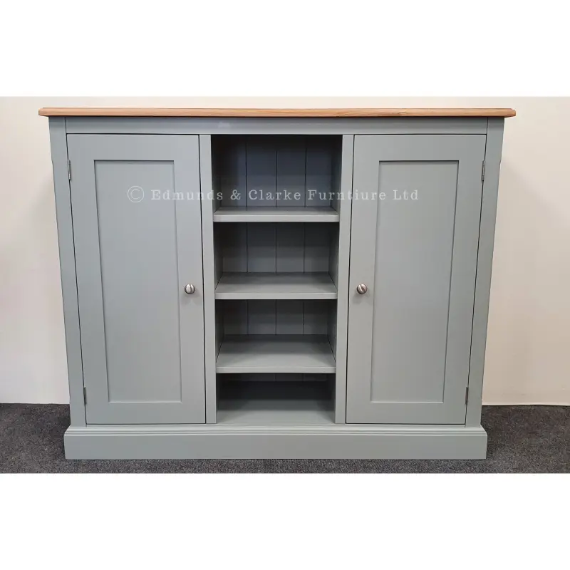 This versatile shallow cupboard has been carefully designed to include many small shelves within behind closed doors with useful open central shelves to show off your favourite items. It would not look out of place in any room of your home, did we mention it would make a great shoe storage solution too!