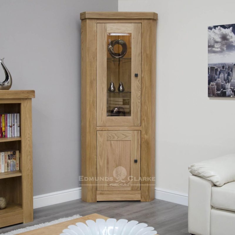 Our Hadleigh solid oak chunky corner display unit with light is the perfect piece for your home.