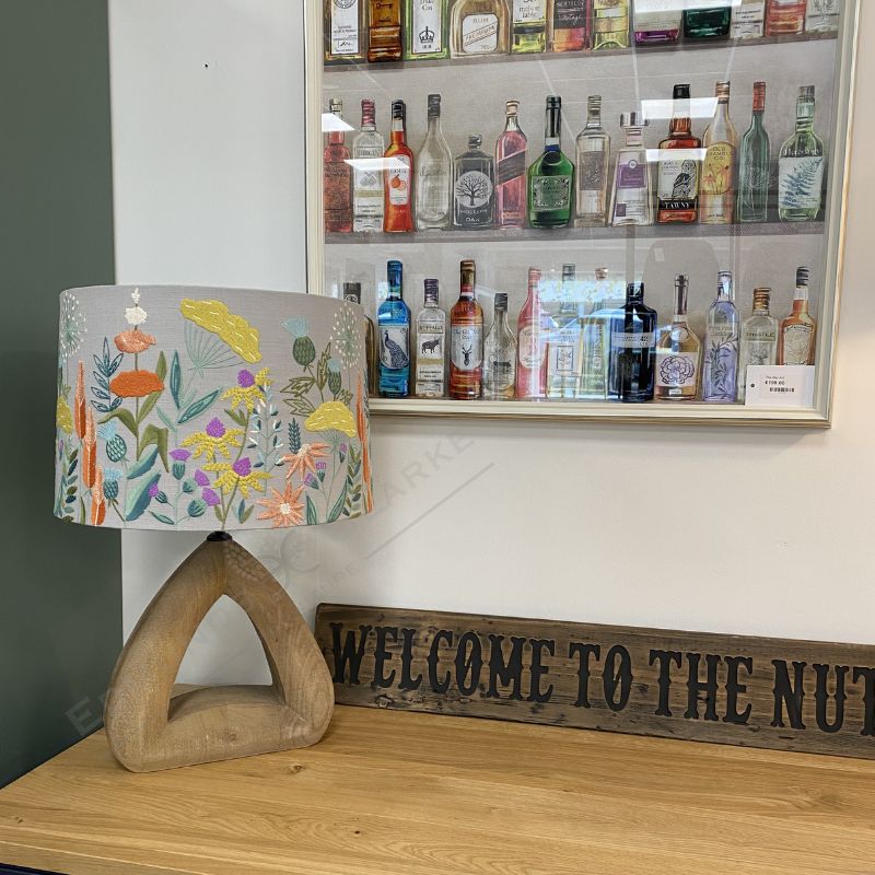 Choose from Ezra or Ensley lampshade. Beautifully embroidered florals on a neutral cotton background.