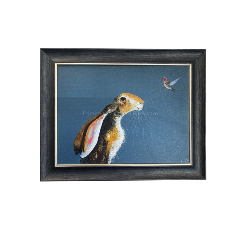 Set against a calming blue background and enclosed in a dark grey frame, Bronte makes the perfect addition to nurseries, living rooms, creative studios, or anywhere that could use a cheerful touch.
