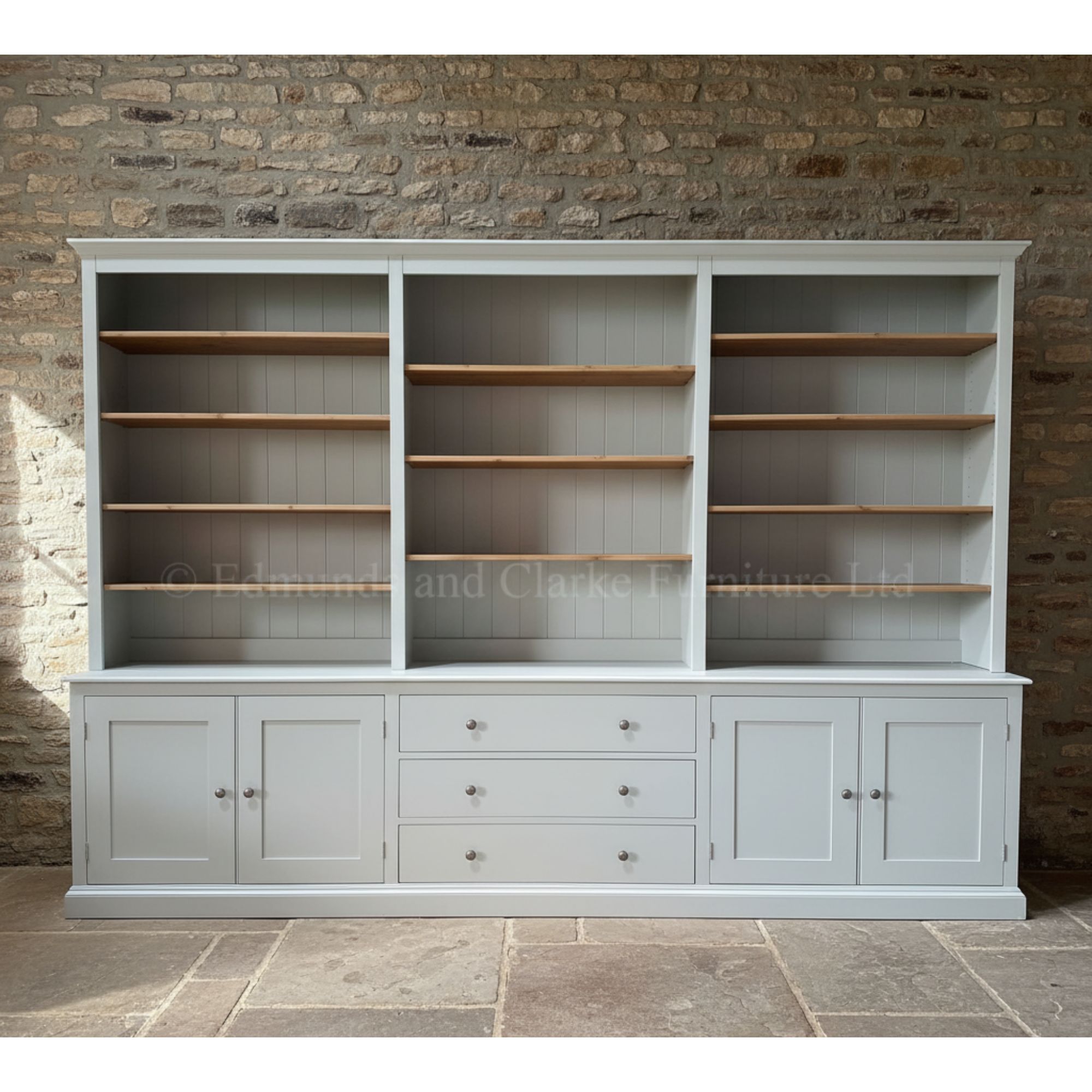 As standard we offer the shelves in two finishes – painted allover to match the main unit, or light oak stained waxed pine to either match a complete wood unit or feature as a nice contrast to the painted outer. If you require solid oak shelves in any of our standard oak finishes then please get in touch for a competitive quotation.