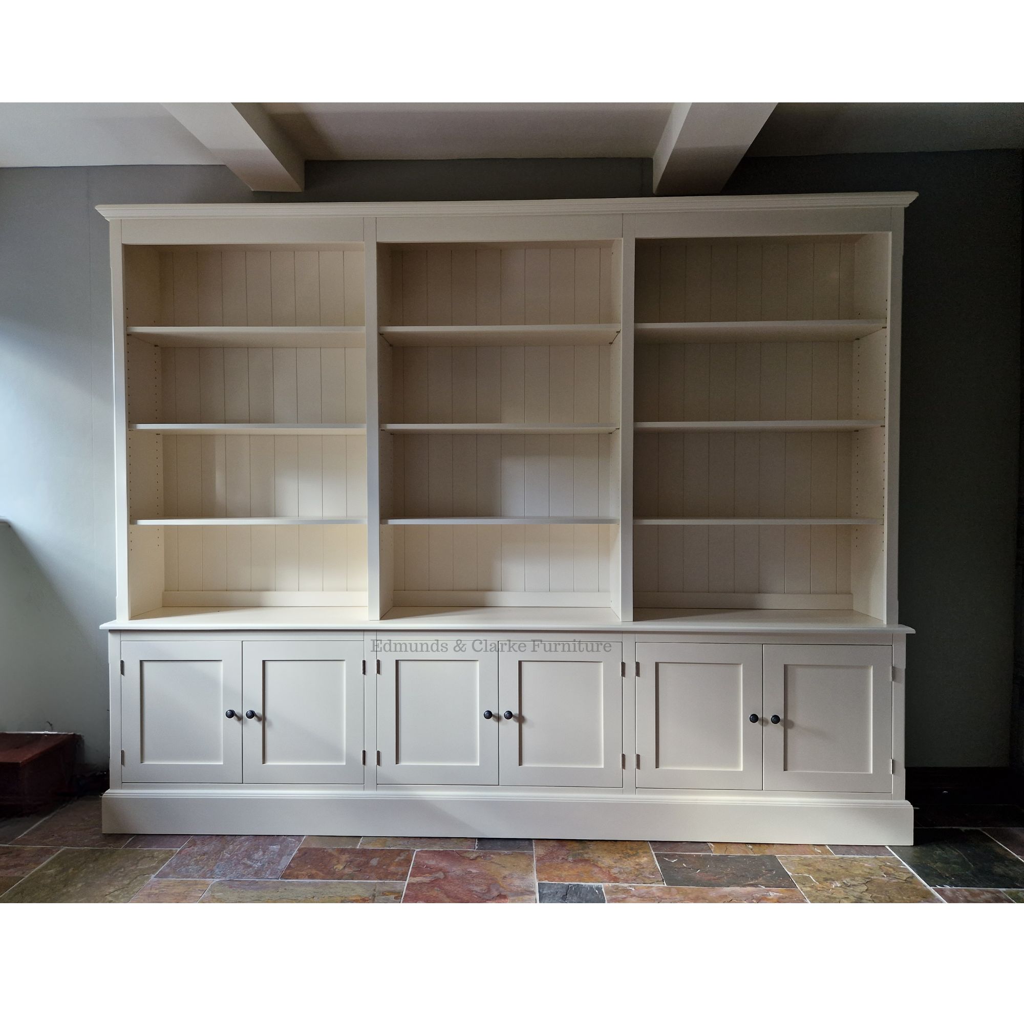 This bookcase has a simple framed design adding strength, and features a curved edge to the front parts giving extra detail. With our in-house Edmunds design, there is no need for a central divider between the pairs of doors in the base; along with 1 adjustable shelf in each, this allows access for larger items. There are 9 adjustable shelves in the rack section allowing for versatile storage. With lots of different finishes to choose from you can create something as individual as you. We also offer a full range of bookcases with cupboard doors that are all one depth – available to find here>