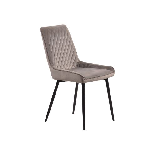 A very trendy Scandinavian style dining chair. These unusual chairs are both retro yet sophisticated and made from soft velvet fabric which has exquisite quilted stitching on back. The elegant slim black spindle legs give these chairs a modern but sophisticated twist. Alongside the matching bar stools they would make a perfect addition to complete any dining room experience.
