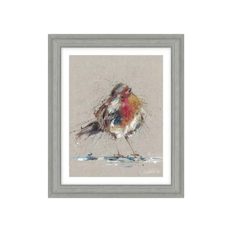 Thinking of you is the perfect framed image of curious robin. Hand finished using textured gel with printed white border – no glass!