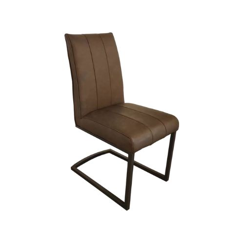 The seat is upholstered in a vintage style brown PU, with line stitch elements, and a black powder-coated metal leg frame.