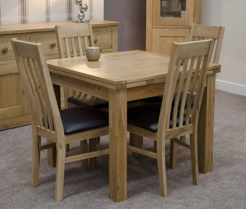 Our Woodbridge solid oak small draw leaf extending table features: